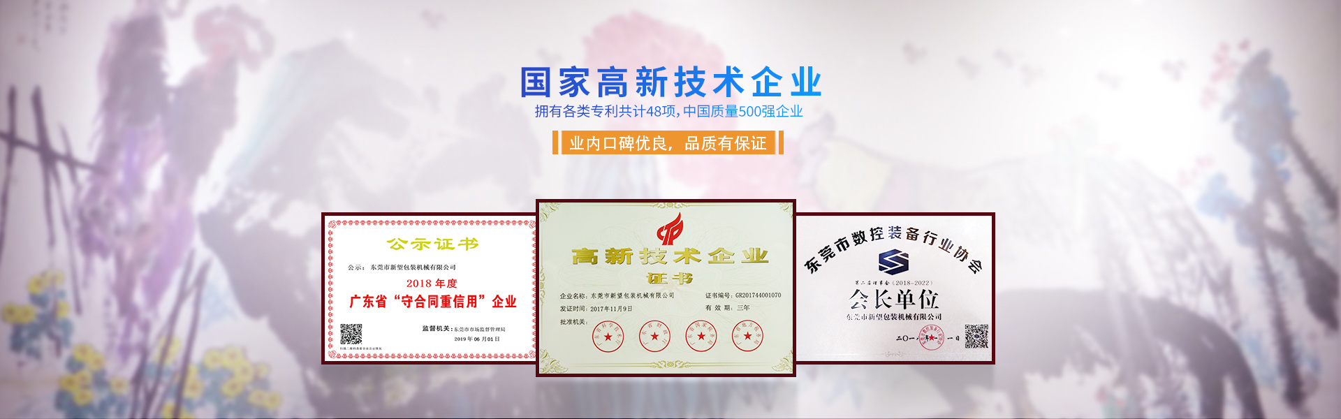 新望機械成立于1998年,位于東莞市東部工業(yè)園區(qū)的中心地帶——企石鎮(zhèn)東平村,交通方便、環(huán)境優(yōu)美舒適、視野開闊。公司注冊資本2000萬元,擁有辦公室、廠房等18,000多平方米。已通過ISO9001:2015國際質(zhì)量管理體系認證,擁有國家各類專利共計58項。是東莞市企石鎮(zhèn)工商聯(lián)副會長單位、東莞市企石鎮(zhèn)文學(xué)藝術(shù)界聯(lián)合會副主席單位、東莞市環(huán)保包裝行業(yè)協(xié)會副會長單位、東莞市數(shù)控裝備行業(yè)協(xié)會第二屆會長單位、廣東省包裝技術(shù)協(xié)會常務(wù)理事單位、廣東省膠粘劑行業(yè)協(xié)會理事單位、廣東省著名商標企業(yè)、國家高新技術(shù)企業(yè)。